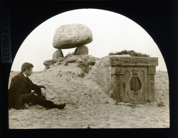Compared with the Balkans and Corsica – which inspired dozens of his slide-show lectures – Jutland seemed to hold limited interest for Howdill. His Denmark slides contain none of the feasts, fairs and funerals he photographed on his other travels. Perhaps that is why he resorted to rifling through Horace Marryat to spice up his notes. But on reaching Skagen, the furthermost point in his Jutland journey, Charles Barker Howdill does appear to have experienced some sort of epiphany in the windswept sands of this ‘outlandish spot’. Howdill’s Skagen notes end with a dour prediction that Drachmann’s sand-dune grave might be torn asunder by the elements. Happily, more than a century later the poet’s romantically-located tomb remains intact.